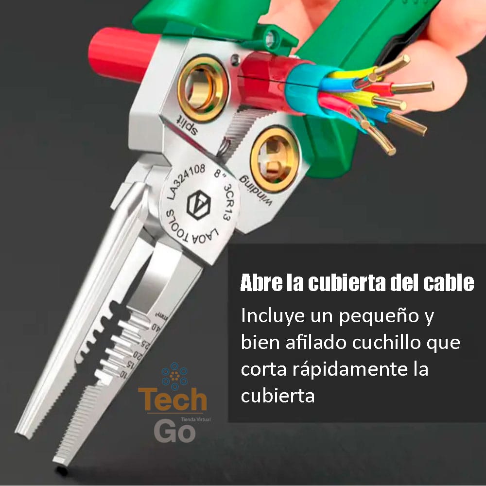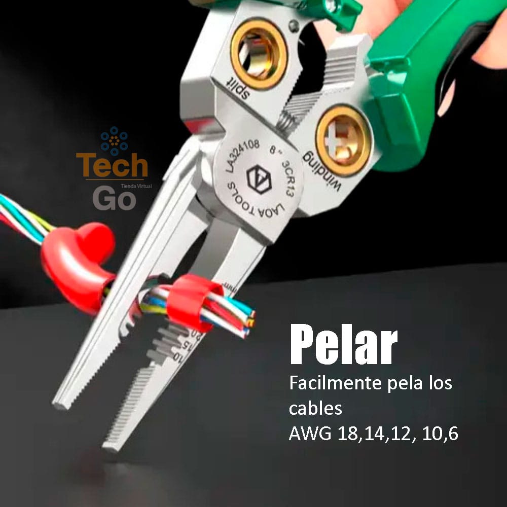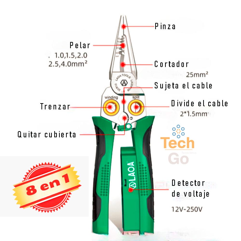 - Pinza para electricista 8 en 1, detector de voltaje, pela, corta, divide, trenza, prensa, es pinza de punta, abre cubierta