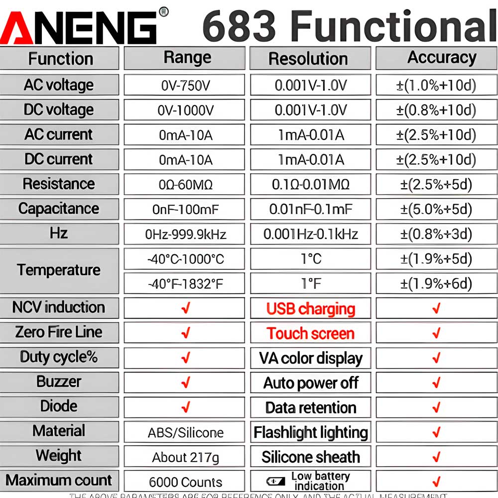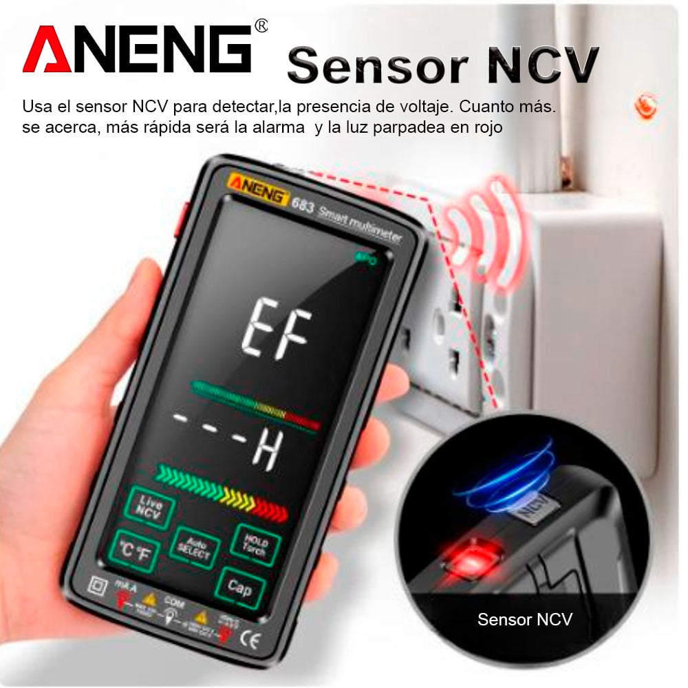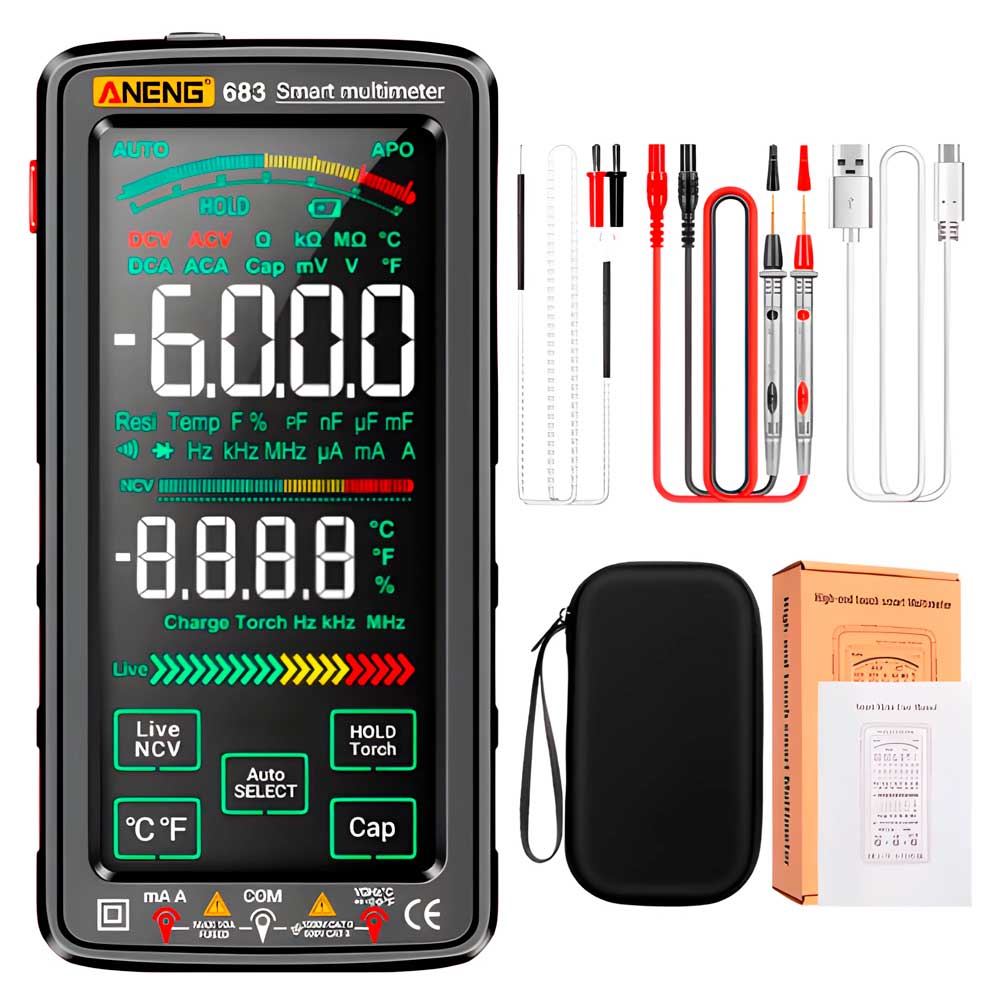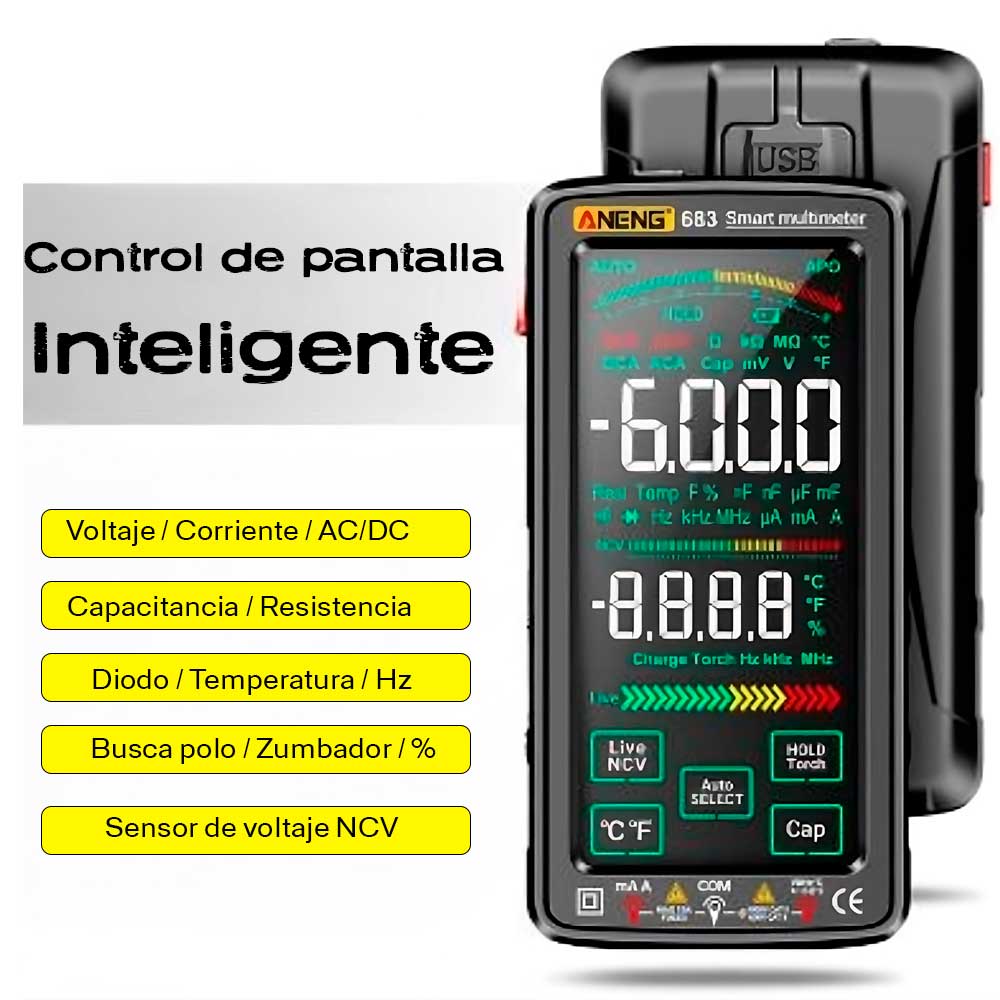 ANENG 683 Multímetro Inteligente de Alta Gama, Rango Automático, Táctil, 6000 Cuentas, Recargable.