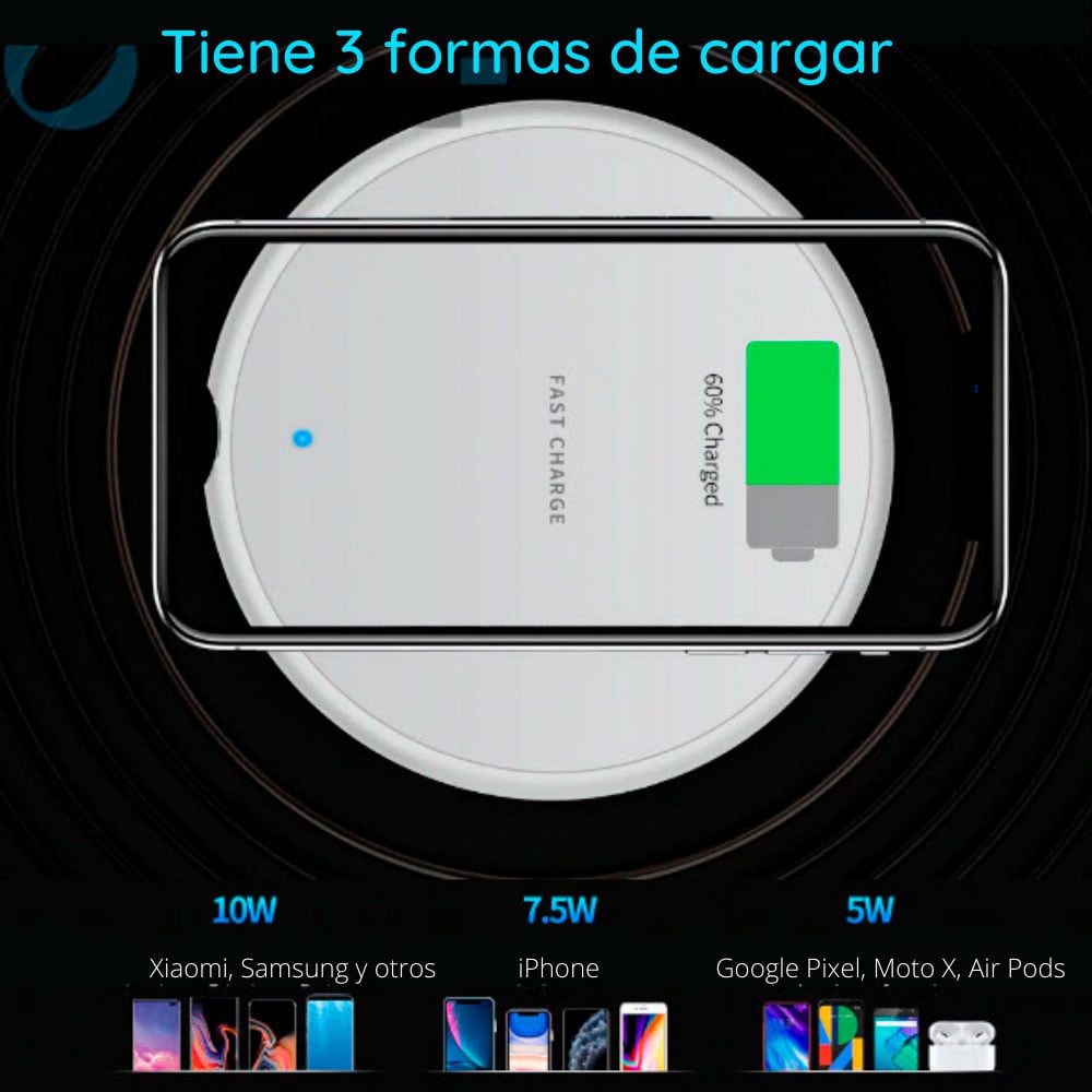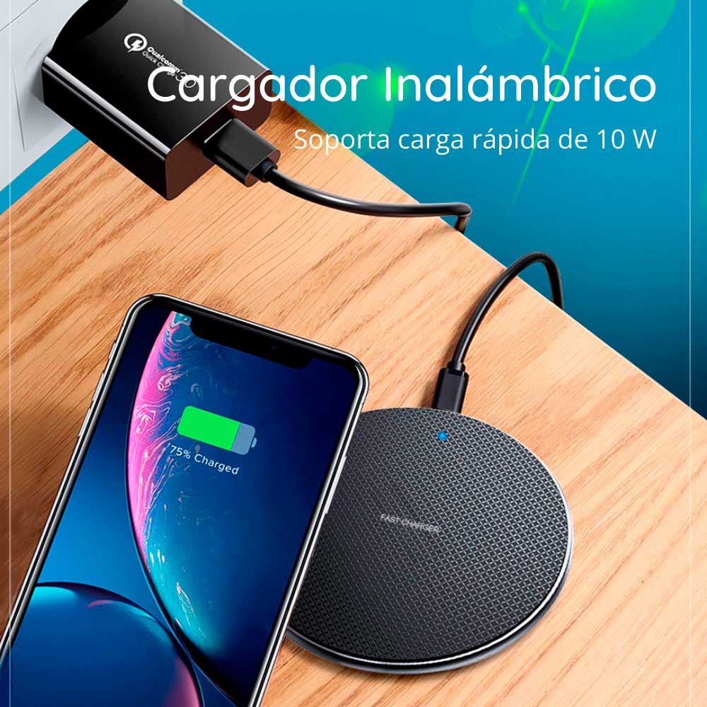 Cargador Qi Inalámbrico OLAF 10W para iPhone, Samsung, Xiaomi, One Plus, Poco,etc